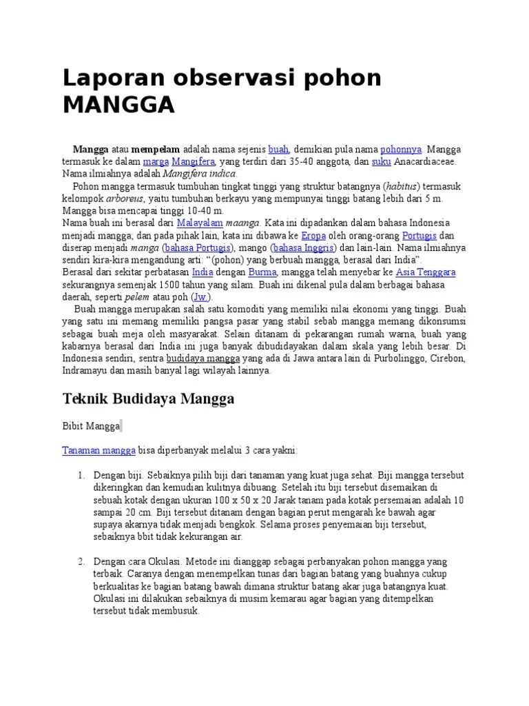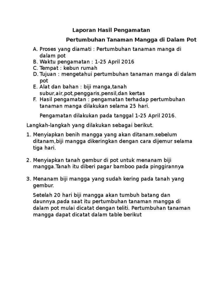 Laporan Hasil Observasi Pohon Mangga - Contoh Teks Laporan Hasil Observasi Singkat Beserta Strukturnya / Contoh teks laporan hasil observasi singkat tentang hewan tumbuhan lingkungan alam sekolah beserta strukturnya pengertian dan struktur teks .